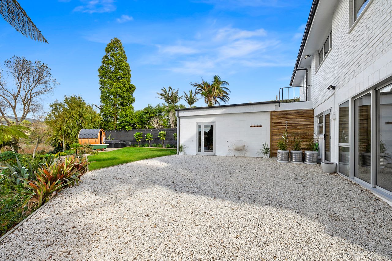 Step outside and let nature guide your experience. Surrounded by lush, landscaped gardens, Oakura Oasis invites you to unwind in multiple outdoor areas—including a fenced front yard perfect for kids or pets, a sunny deck, and an entertainment patio. Take in the stunning views of the Kaitake Ranges and Mount Taranaki as you soak in the private spa or rejuvenate in the sauna. Located in a quiet cul-de-sac just a two-minute walk to the beach and village, you're perfectly placed to explore local walkways, enjoy a round of golf, visit the nearby surf school, or sip wine at the renowned Butlers Reef Pub.